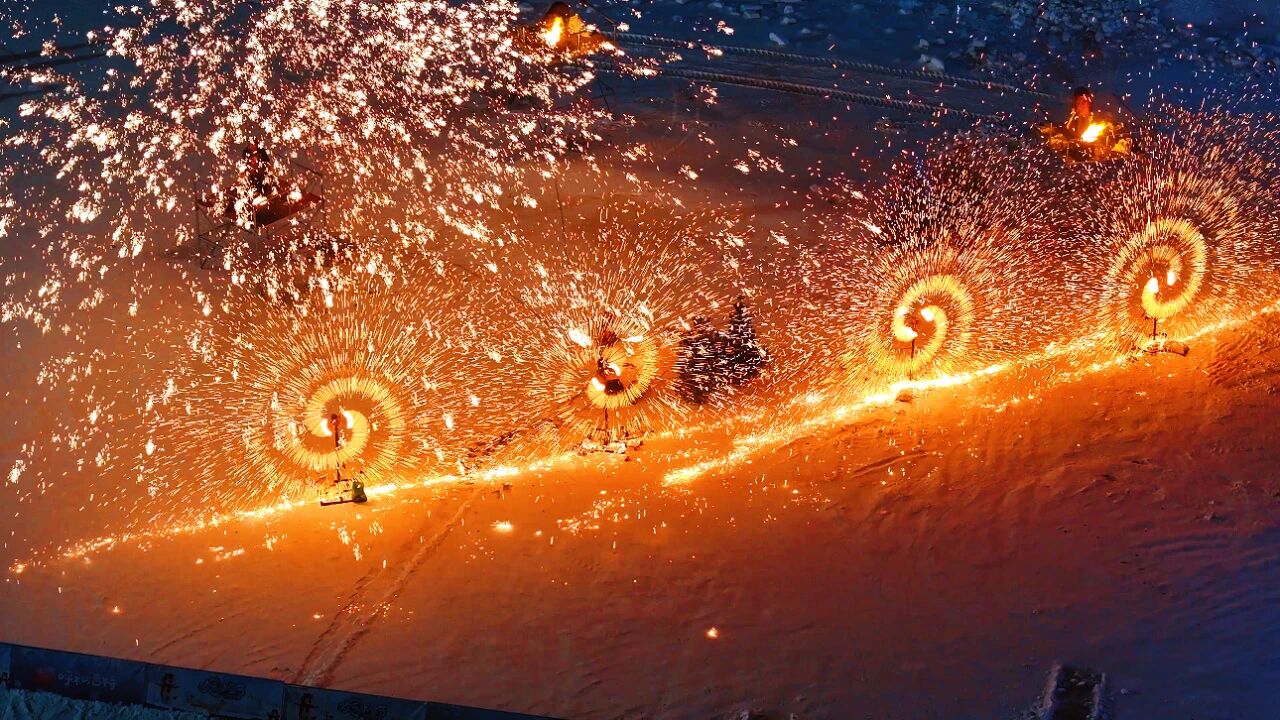 开幕式当晚,跨年活动将节日氛围推向高潮。自1630分起,电音律动、摇滚酣唱、互动游戏接连登场,千年非遗绝技“打铁花”率先点亮苍穹,铁水泼洒如星雨纷落,绘就一幅“火树银花不夜天”的壮丽画卷。20时整,开幕式在烟花、极光与漫天花雪中正式启动,祥瑞“鳌鱼”凌空巡游,与激昂舞姿交织成梦幻场景。